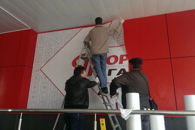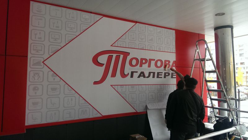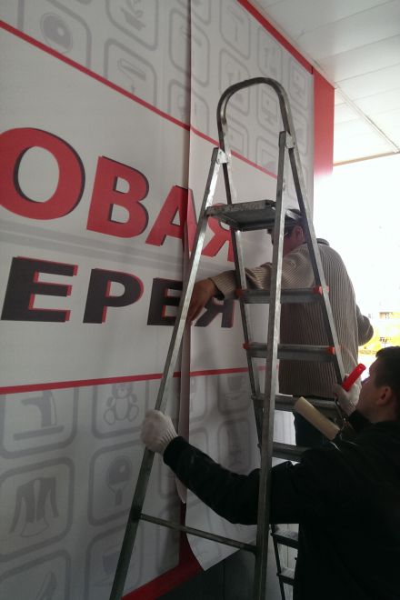 Как правило, большие вывески изготавливаются из баннерной ткани и монтируются при помощи конструкций или механического крепления к стене. Но время не стоит на месте, вывеска, показанная на фотографиях, сделана из уникального материала Asphalt Art®TexWalk®.