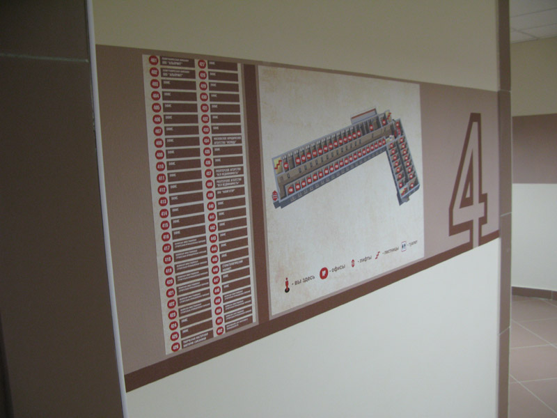 Навигационные таблички или стенды к ним можно написать все то, что описано выше. В одном из проектов мы так же применили материал TexWalK®и сделали вот такие стенды, в которых можно менять информацию. По итогам эксплуатации, эта идея оказалась великолепной.