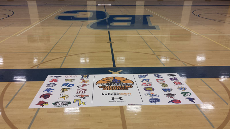 Как и в предыдущих случаях в спортивных залах самым большим пространством, к которому приковано внимание зрителей является горизонтальная поверхность, где происходит соревнование.Таким образом пространство пола вокруг зоны соревнований является идеальным местом для размещения рекламы.