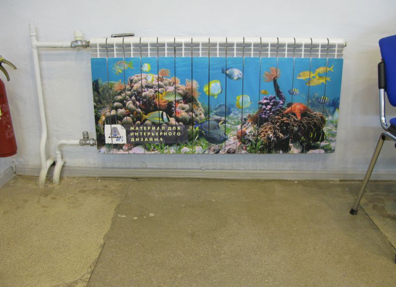 Поэтому мы решили провести тест и сделать одну батарею вот с таким, симпатичным дизайном. После отопительного сезона мы посмотрим, что получится. Конечно снимем несколько полос и проверим остатки клея на поверхности, адгезию, изменение структуры материала, краски и т.д.